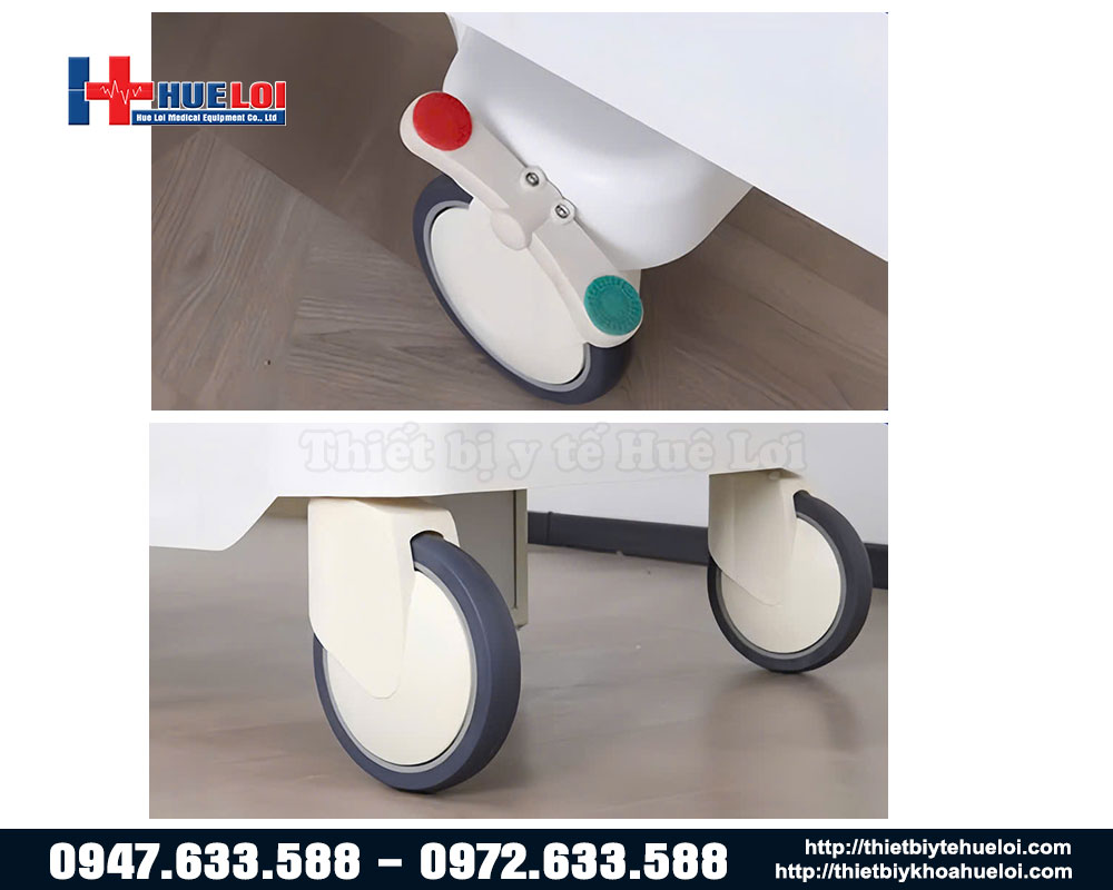 - Khung giường chắc chắn, có tay vịn an toàn và hệ thống bánh xe linh hoạt, dễ di chuyển.