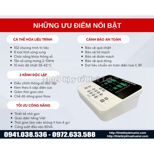 Giải pháp điện trị liệu tần số trung với nhiều thiết lập cảnh báo an toàn