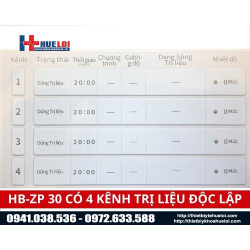 Máy điện xung trung tần HB-ZP30 được trang bị lên đến 4 kênh đầu ra có khả năng tùy chỉnh thông số hoạt động độc lập, cùng với 8 cặp điện cực đa dạng kích thước giúp tùy chỉnh linh hoạt điện trị liệu kết hợp nhiệt trị liệu cho từng vùng cơ thể cũng như từng mục đích trị liệu cụ thể. Thiết kế này mang lại sự linh hoạt vượt trội, cùng với công suất đầu vào lớn 120VA, đảm bảo máy cung cấp giải pháp trị liệu ổn định đồng thời tới bốn bệnh nhân giúp giảm thiểu tối đa thời gian chờ của người bệnh và tối ưu được hiệu suất cơ sở trị liệu. Mặt khác có thể sử dụng 4 kênh này để tác động lên nhiều vùng cơ thể riêng biệt trên cùng một bệnh nhân, xây dựng phác đồ trị liệu đa vùng.