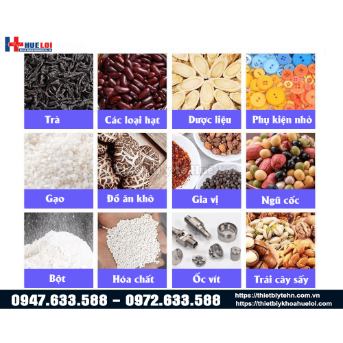 - Các loại dược liệu, trà , các loại hạt, ngũ cốc, gia vị ,bột và các loại ốc vít,phụ kiện trang sức, hóa chất...
