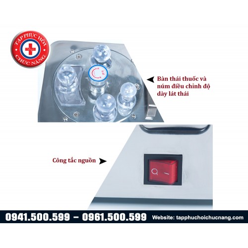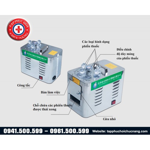 - Máy cắt thuốc bắc tự động công suất làm việc lên tới 800 phiến thuốc/ phút, có nhiều hình dạng lát cắt để lựa chọn, điều chỉnh được độ dày lát cắt, chất liệu thép cao cấp không gỉ bền bỉ theo thời gian. Sản phẩm thích hợp sử dụng trong các bệnh viện hoặc phòng khám Y học cổ truyền, giúp tiết kiệm thời gian và công sức cho nhân viên y tế.