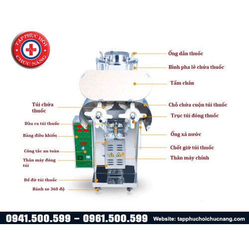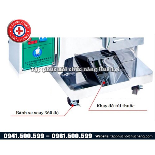 - Nếu bạn đang có sẵn dụng cụ sắc thuốc bắc tại nhà và muốn có thêm một chiếc máy chuyên dụng để đóng nước thuốc sắc vào những túi nhỏ thì sản phẩm Máy đóng gói thuốc sắc tự động này là dành cho bạn. Nước thuốc sau khi sắc sẽ được chưa trong bình pha lê chịu nhiệt cao sau đó chia vào các túi nhỏ, một cách tự động.