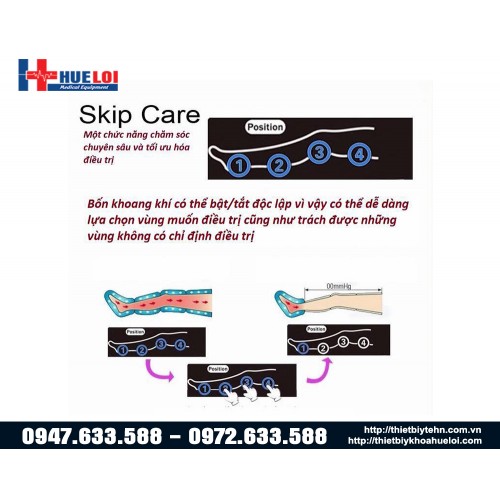 - Chế độ skip care độc đáo: các khoang khí hoạt động một cách độc lập, vì vậy bạn có thể bỏ qua những vùng trên cơ thể không muốn điều trị