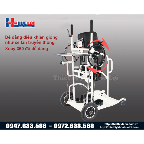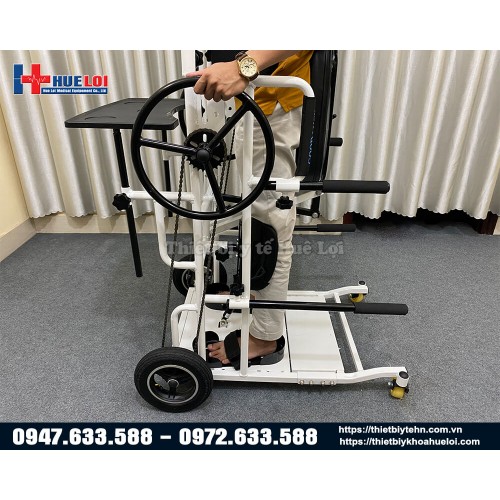 - Bánh xe lăn đa năng hỗ trợ tập đứng được điều khiển cơ học ngay cả ở dạng xe lăn hoặc xe tập đứng