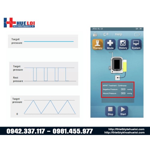 - Khả năng theo dõi áp suất: Tại vết thương và tại máy/thiết bị