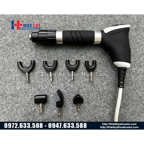 Ngoài ra, thiết bị đi kèm 13 đầu điều trị chuyên dụng: 6 đầu điều trị đau, 4 đầu cho mô cân và 3 đầu dành riêng cho vùng cột sống – giúp mở rộng phạm vi điều trị và phù hợp với nhiều nhóm bệnh lý khác nhau.
