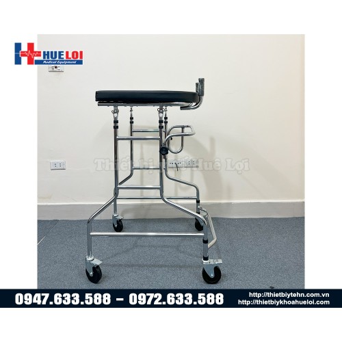 - Khung tập đi có 4 bánh xe 4 bên để thuận tiện cho di chuyển, thích hợp cho địa hình bằng phẳng.