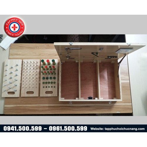 - Thiết bị tập linh hoạt tay cho bệnh nhân tai biến tập hợp một loạt những động tác trong cuộc sống sinh hoạt hàng ngày từ đơn giản đến phức tạp như bật công tắc, cài khóa cửa, vặn ống vít...giúp người bệnh bị yếu liệt do di chứng tai biến mạch máu não tập vận động các ngón tay, qua đó cải thiện độ linh hoạt bàn tay.