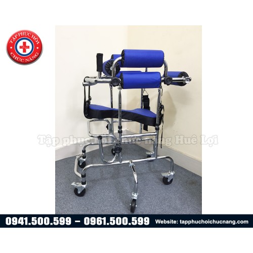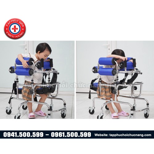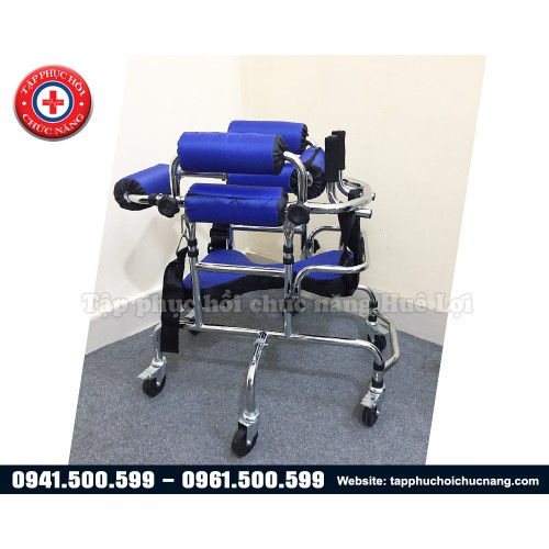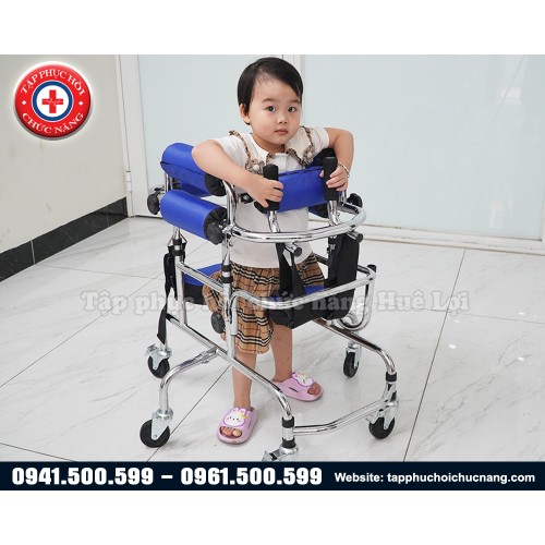 - Khung tập đi trẻ em loại 6 bánh xe dành cho trẻ bị liệt nửa người hoặc liệt 2 chi dưới do bại não, chậm phát triển tâm thần vận động, di chứng viêm màng não, viêm não Nhật Bản, viêm não virus...có thể tập đi tại nhà từ đó góp phần phục hồi khả năng đi lại cho trẻ...