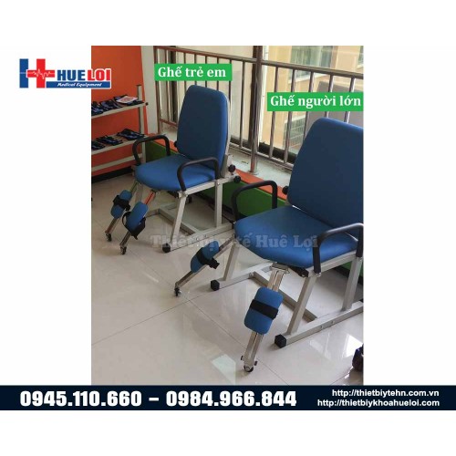 - Ghế tập phục hồi chức năng khớp háng cho trẻ em và người lớn (có 2 kích thước khác nhau). Thiết bị giúp tập luyện các động tác vận động khớp háng (dạng - khép - xoay trong/xoay ngoài) thông qua hệ thống bánh xe di chuyển trơn tru. Sản phẩm thích hợp sử dụng trong các bệnh viện hoặc trung tâm phục hồi chức năng. Khách hàng muốn mua về tự sử dụng tại nhà nên tham khảo ý kiến của các chuyên gia phục hồi chức năng trước đó.