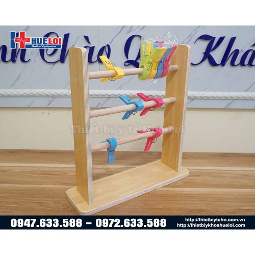 + 1 giá gỗ gồm 9 chiếc kẹp màu sắc khác nhau, vừa luyện thao tác tay vừa kích thích khả năng nhận thức của não bộ