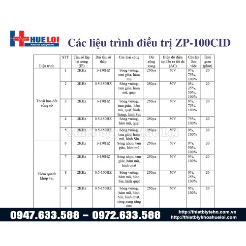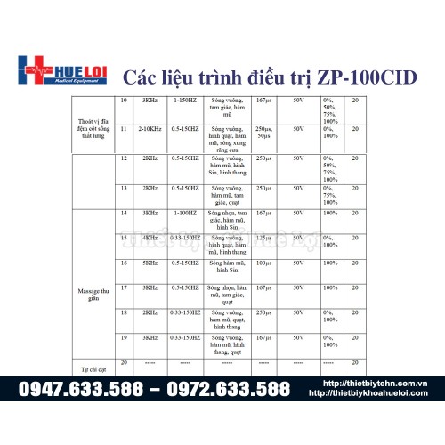 Máy điện xung trung tần ZP-100 CID: thông số kỹ thuật